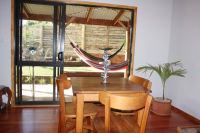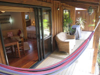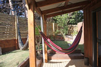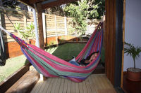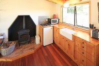 Tui Cottage: Sleeps 2This Cottage is temporally unavailable. Tui Cottage is a one bedroom and sleeps two people, has a cosy log burner, outside claw foot bath, hammocks and is fully fenced, and self contained with its own kitchen and bathroom. It is only a few years old and is a cool little vacation house. Perfect for couples that want a romantic getaway or singles that want to chill out and walk to everything or just relax hanging out in the hammocks. Relax in the outdoor bath with a glass of wine and listen to the Tui’s sing! $145- $195 per night. We accept one night bookings but not on a public holiday, Friday or Saturday unless an existing multi night stay takes one of those nights. Check in: 2pm. Photos
